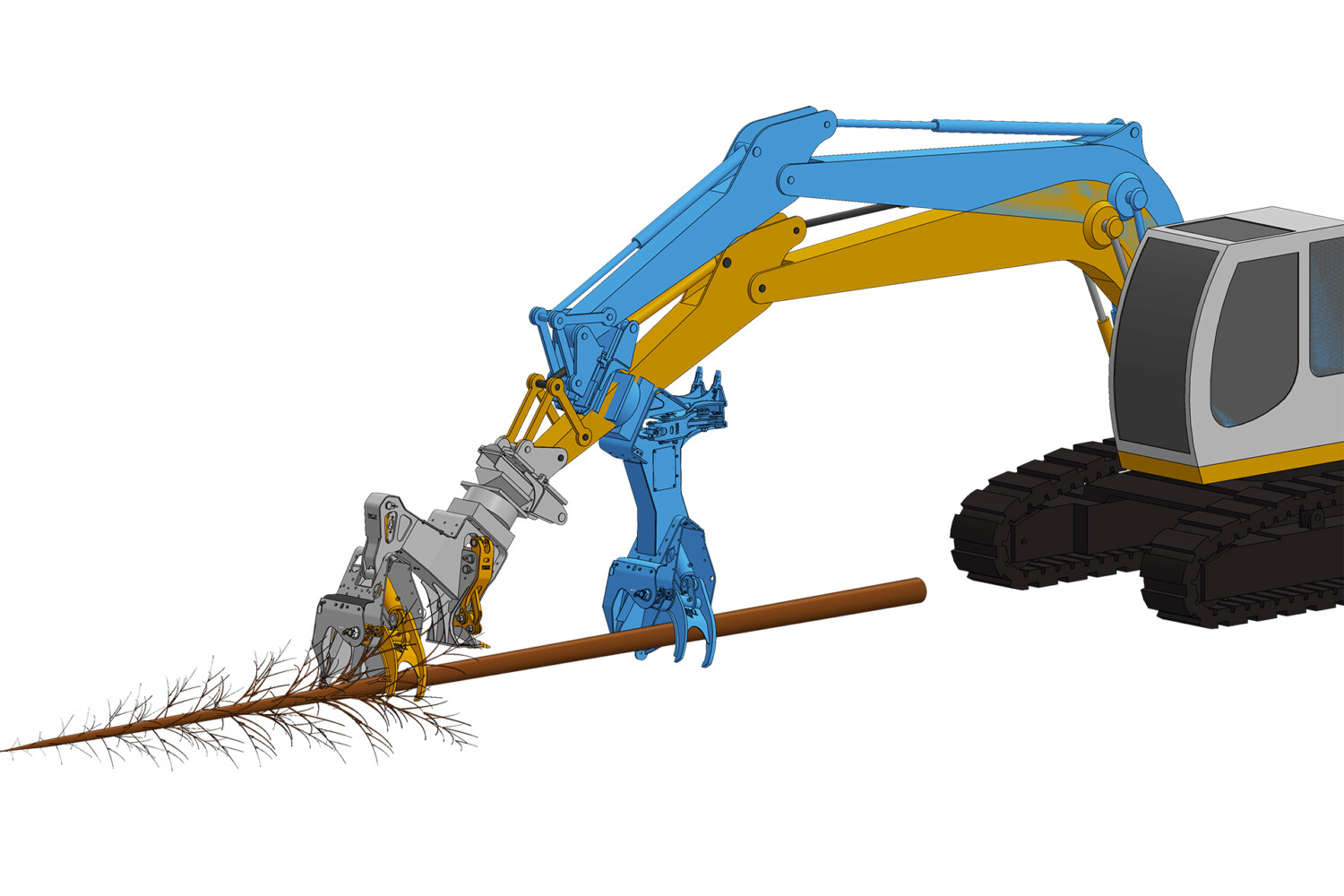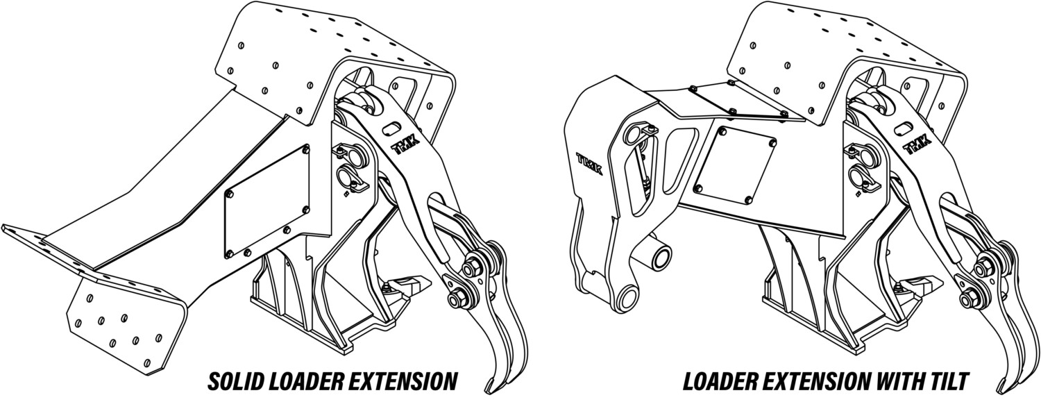 And finally a completely new product for us is the Loader Extension which is the answer to one of the most requested features on our Tree Shears: loading. This new Loader Extension is available in two versions: the solid one that is basically just like our previous Solid Extension but now with a loader grapple and a very useful heel. The other one has those same features that are found in the solid version but also offers a tilt which especially when used in conjunction with a tiltrotator, opens up a whole new world.