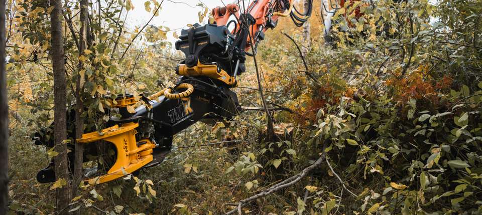 So nowadays, many people are looking for the right kind of forestry equipment for cutting energy wood. In Finland, we have forests as long as the eye can see, and forestry in Finland is a really big thing. Energy wood has been used for a long time. We at TMK have made chopping trees even more efficient with the one grapple arm tree shear.