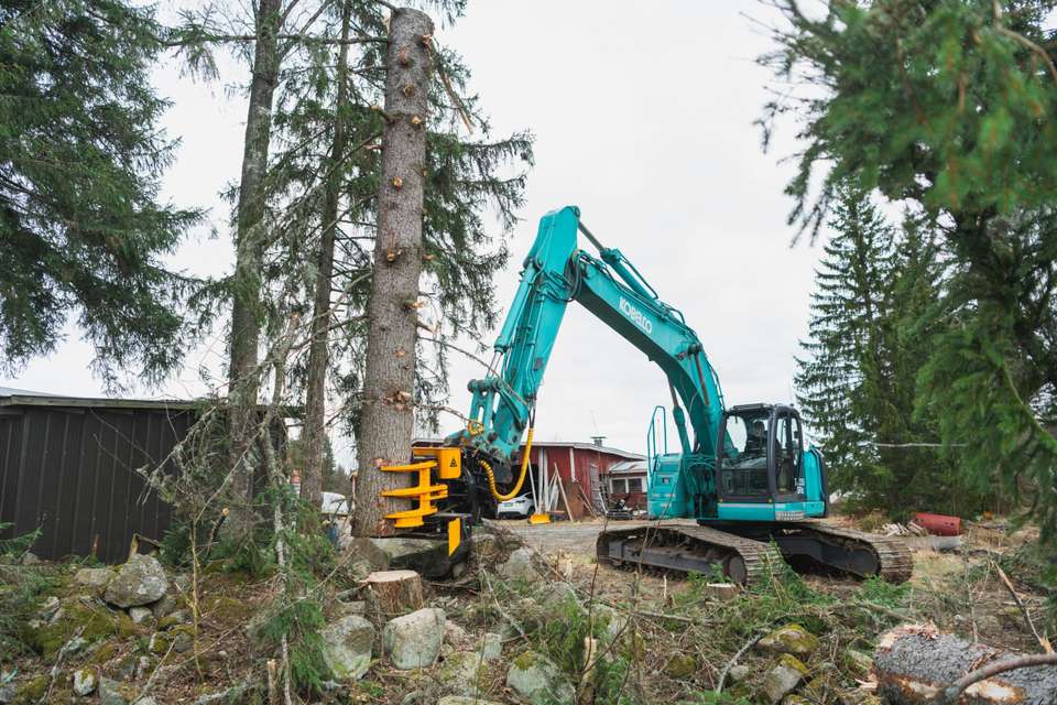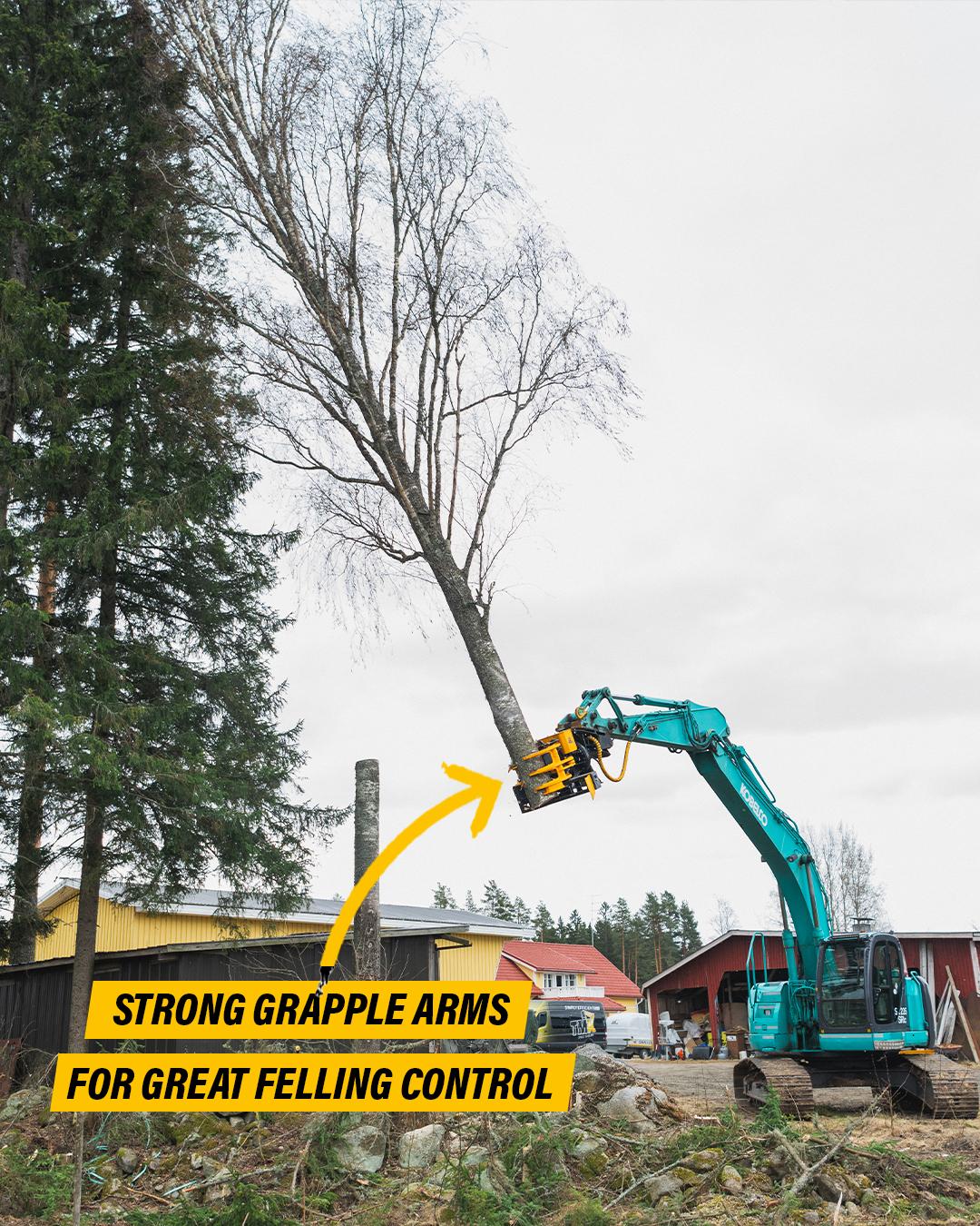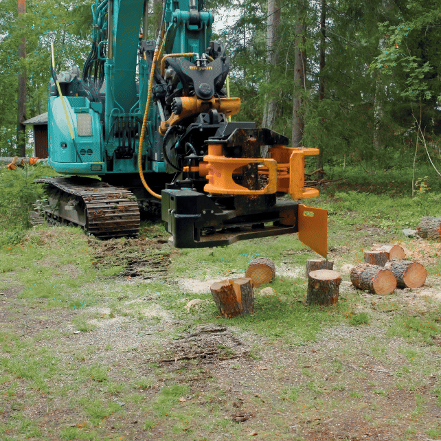 The original product idea was problem tree removal but it has also since developed to encompass a larger market area. The TMK Grapple Saw is suitable for any contracting work where a large cutting capacity is required and there is no need for cutting-to-length precision. Thanks to its diversity and small size, the TMK GS is suitable for a large variety of forestry work, ranging from problem tree removals to forestry thinnings and clear cuts. On a smaller scale, the GS can be used almost like a Tree Shear thanks to the hydraulic blade while still having the option to cut larger trees thanks to the saw unit. The dual grapple arms with their large opening make handling large amounts of smaller trees - or individual larger ones - a breeze.