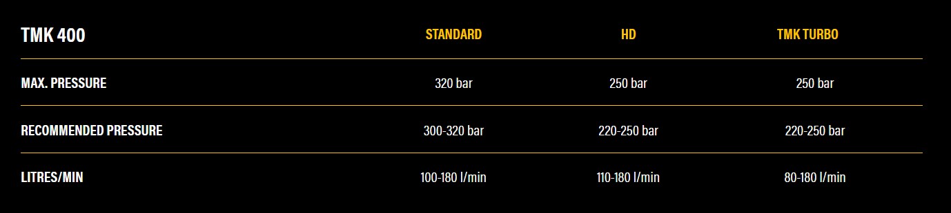 Maybe its time you consider TMK 400 with our HD (heavy duty) cylinder.