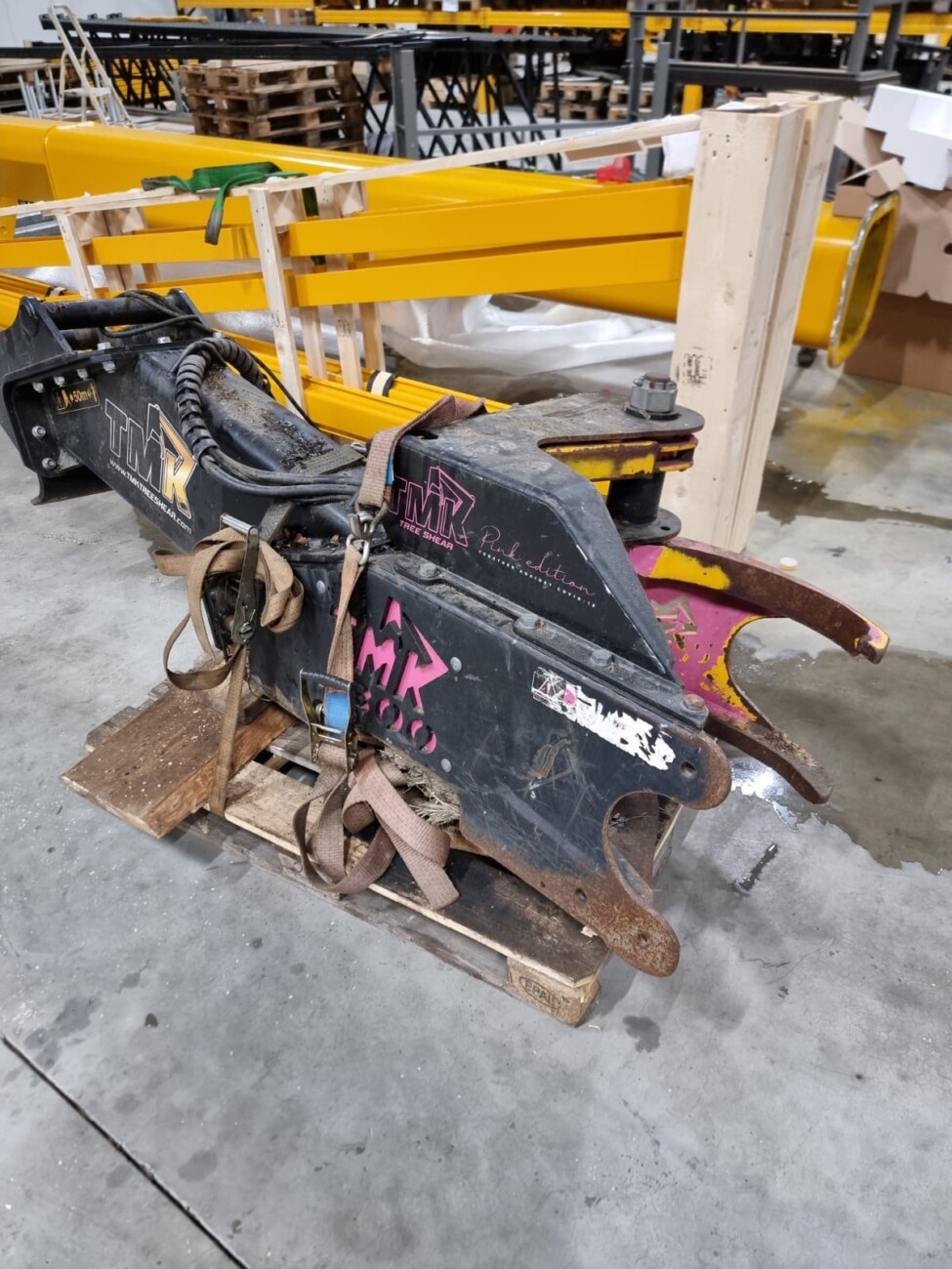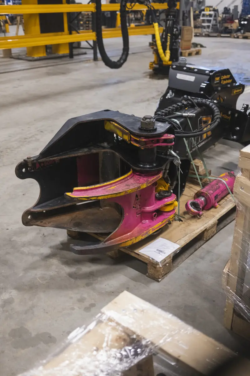 Late last year they reached out to us to see if they could upgrade some parts on this very special shear. We ended up changing the cylinder to a brand new TMK Turbo and at the same time we hooked him up with a BrushGrapple as the original shear didn't have one. So after almost four years it has received the upgrades and has gone back to work making money and doing what it was designed to do. Unfortunately we weren't able to repaint it pink this time but maybe in the future.