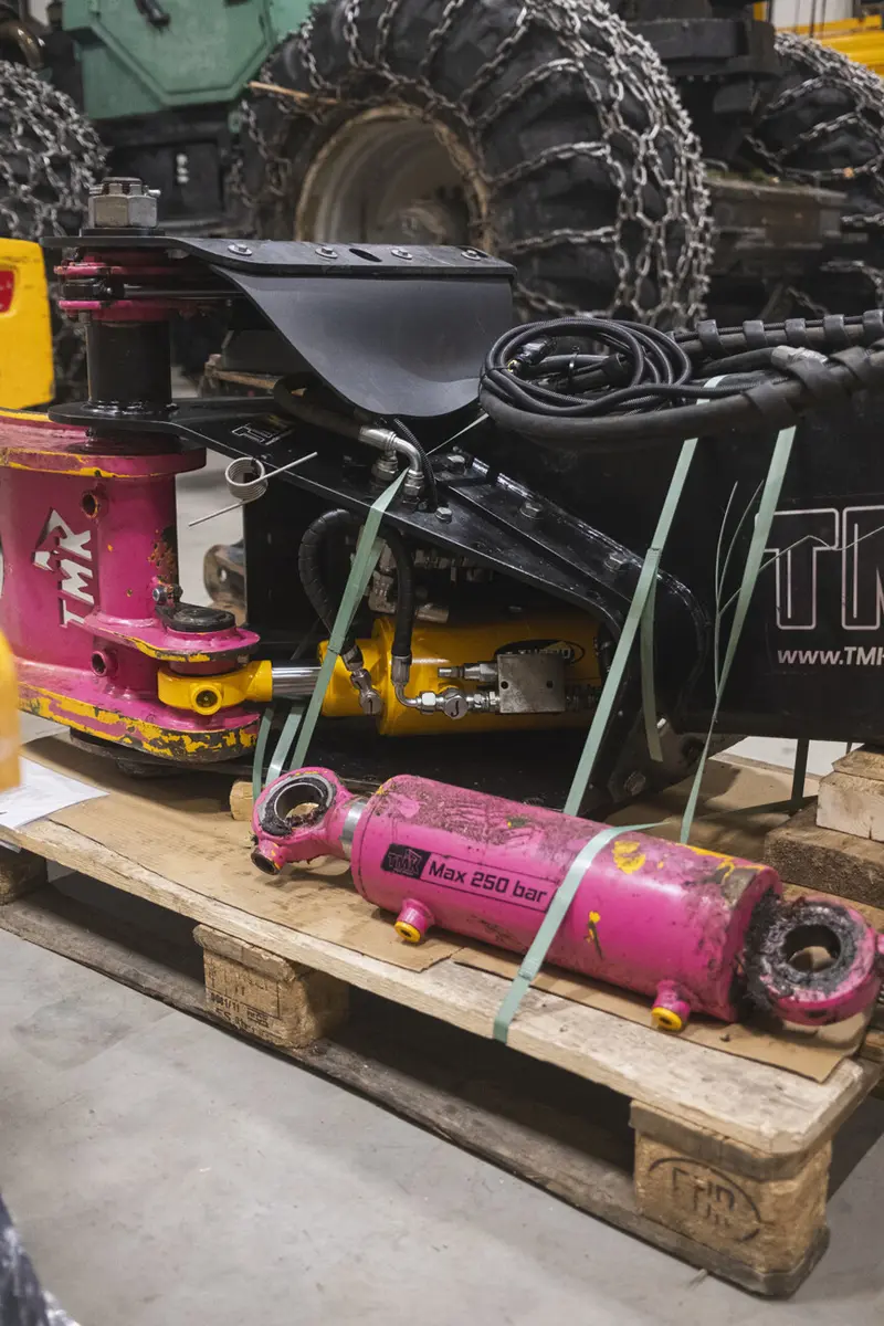It turns out the TMK 300 "Pink Edition" had gotten back to our factory to be upgraded with a new cylinder and some other bits. Oh how all the memories flooded my head! I was so excited to see it after all these years. It had definitely seen some use, as it should, after all it was built to cut trees and not sit on some showroom gathering dust.
