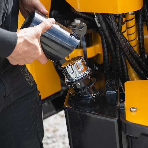 The lubrication oil tank is built right on top of the saw unit and it is pressurized to help keep it going in different situations. We have also protected the pressurized cap with an easily removable cover.