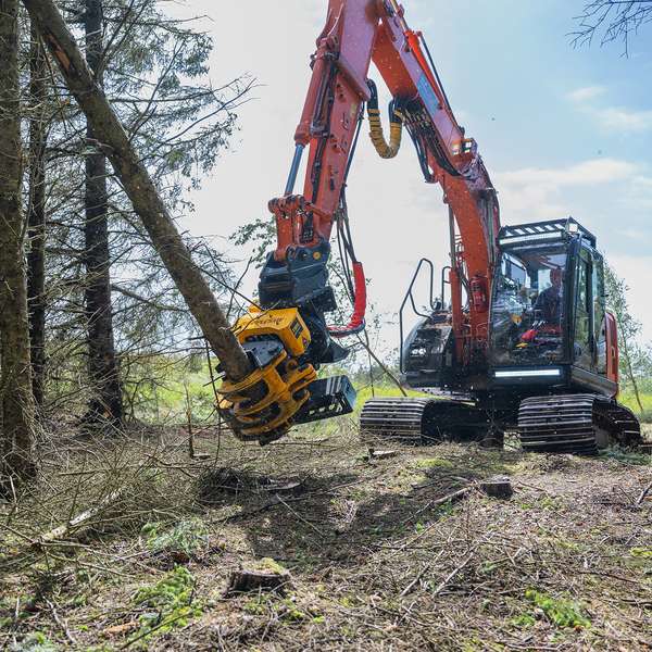 TMK 300 with Collector, Delimber, Loader Extension with Tilt & TMK Turbo cylinder. Fitted under a tiltrotator.
