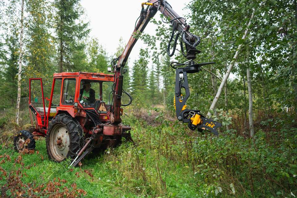 Matti has been using the TMK 150-H on his Belarus 525 with tractor crane. Even though the tractor has seen years of use it still works very nicely and it has no problems with running the TMK 150 Tree Shear, allowing him to clean up his forests with ease!