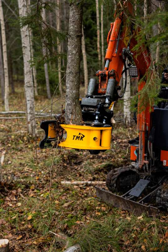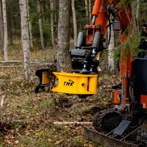 TMK 150 is TMK's smallest Tree Shear that can be used even with excavators as small as 1-ton. The TMK 150 weighs just 85 kg without the bracket, and 120 kg with a hanging linkage designed for forest loaders. The TMK 150 is an extremely efficient way to use even smaller excavators and forest trailers for energy wood logging, clearing field edges or cleaning up around a cottage.