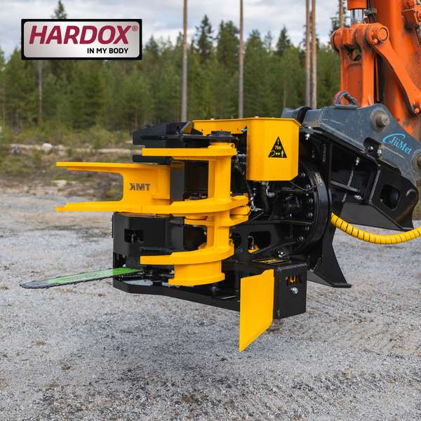 The frame is made from Hardox® 400 and 500 steels, which are known for their wear resistance and durability.