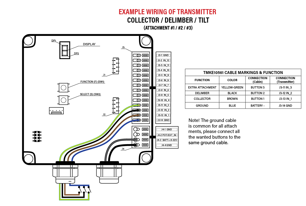For long-term use, it is always best to connect the transmitter of the TMK Wireless unit straight to the buttons of the excavator (or other base machines).